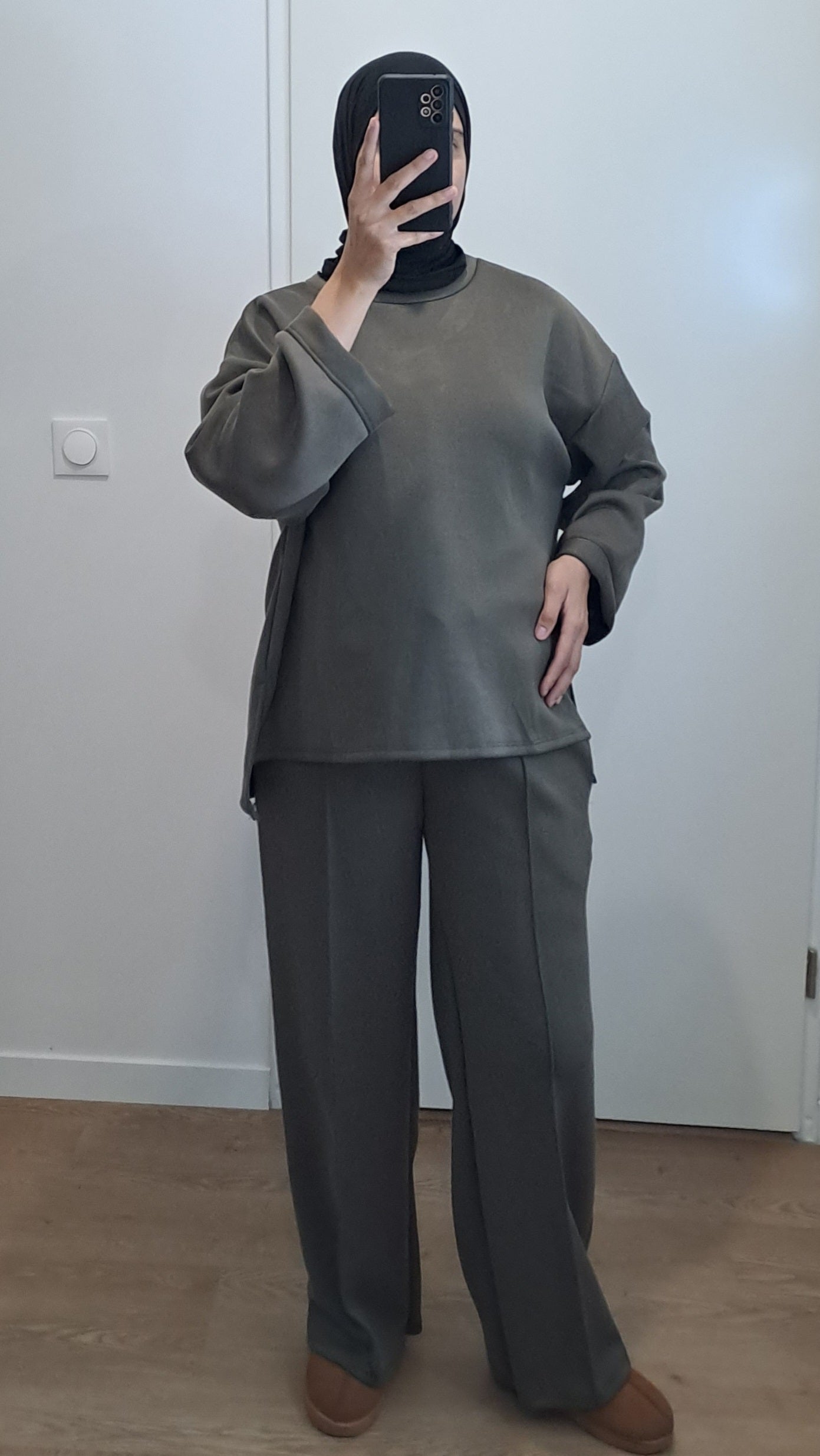 Ensemble jogging avec poches et haut avec fentes Kaki.