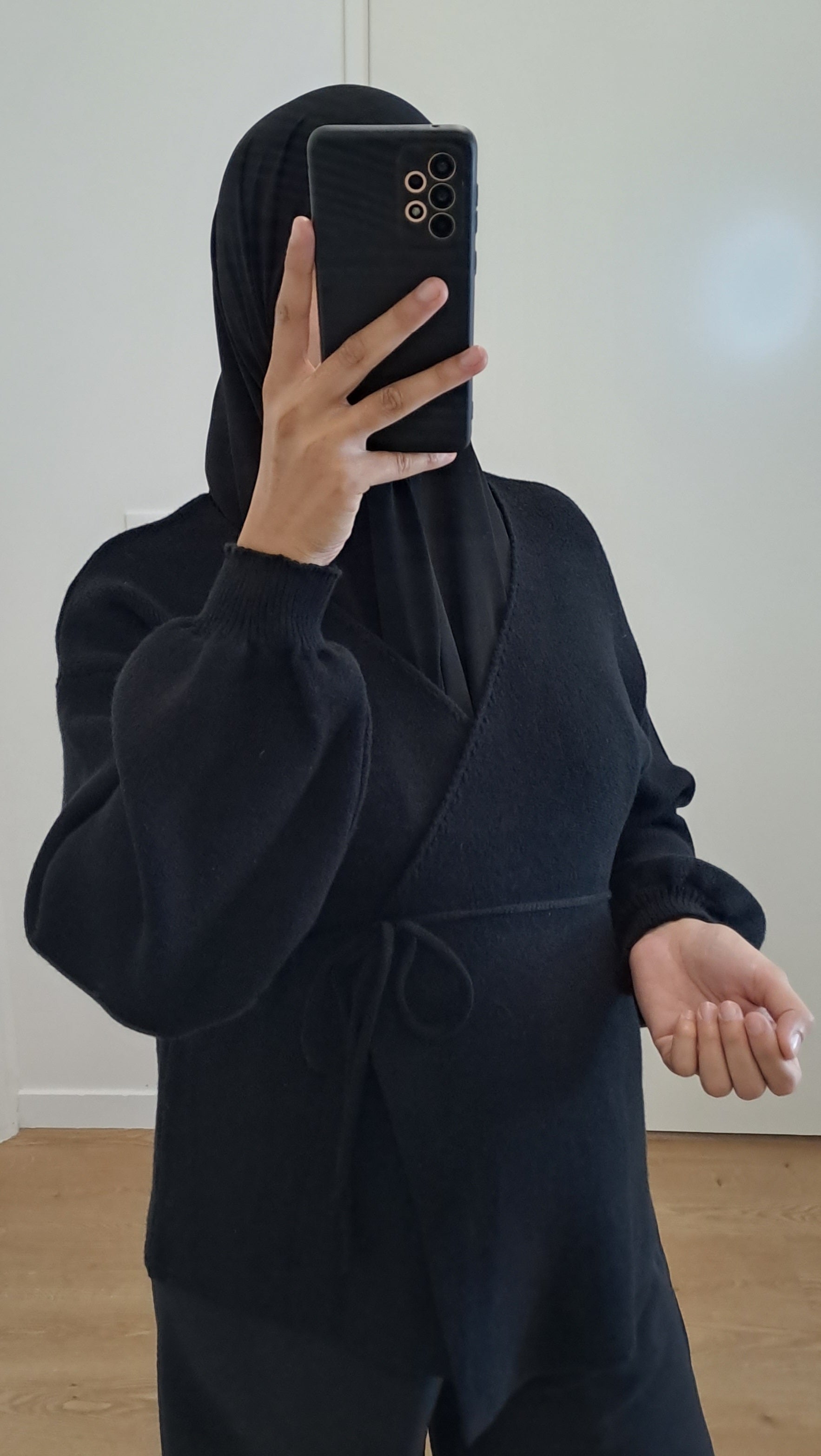 Gilet cache coeur épais et chaud, en maille épaisse Noir.